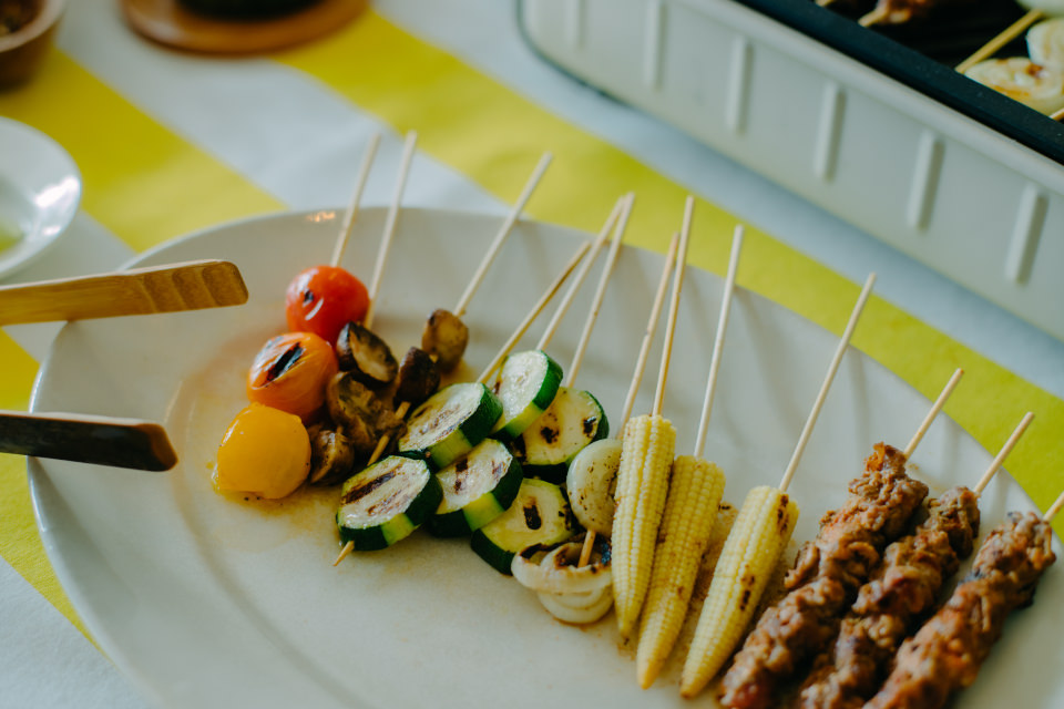 レシピサイト『for LIFE KITCHEN』を夫婦で運営する引田あずみさん。大のキャンプ好きだという引田さんには、“お家でバーベキュー”をテーマに、前半では[ホームバーベキュー]でラム串と野菜串を焼くメニューを教えていただきました。後半ではとろ~りチーズが決め手のタコスを、[ラクレット&フォンデュメーカー グランメルト]で作って、家族3人のバーベキューパーティーが始まります。