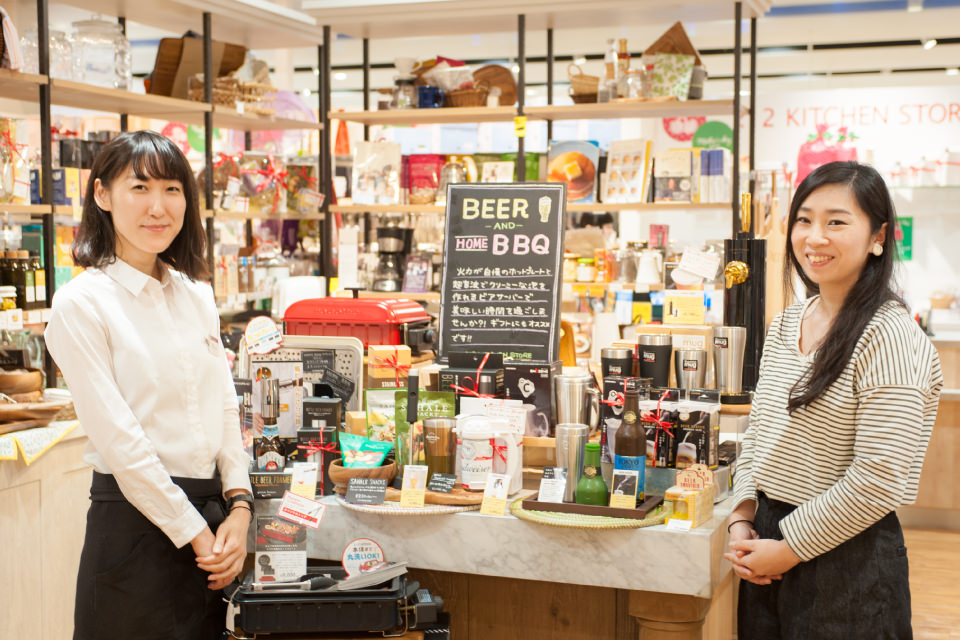 店長の柏香菜子さん(左)と、バイヤーの宮田陽子さん(右)。柏さんがコーディネートした、BBQ コーナーにて