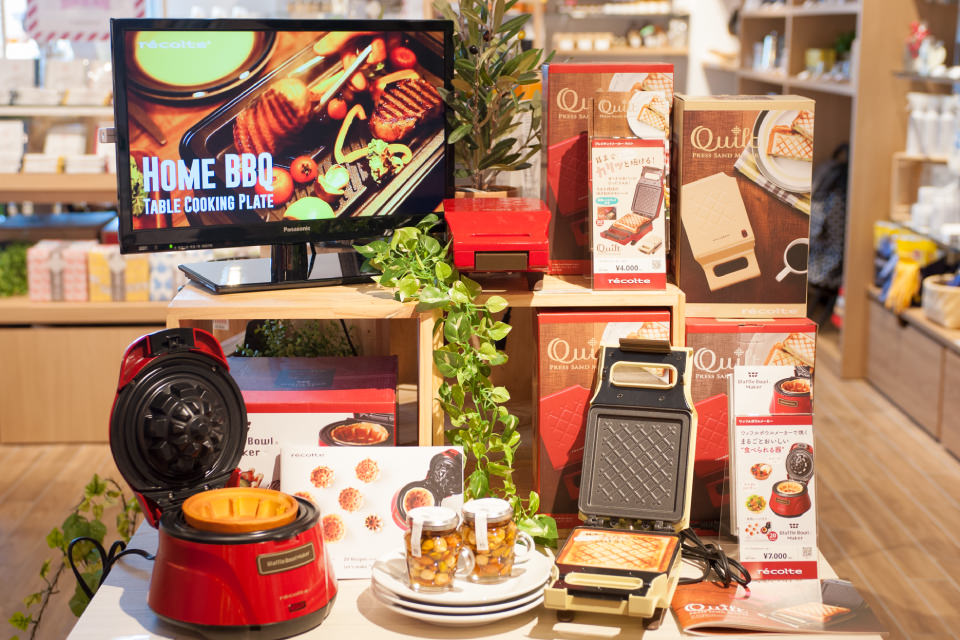 レコルトのコーナー。館内の蔦屋書店と連動し、売り場のテーマに沿った本も一緒に並んでいる