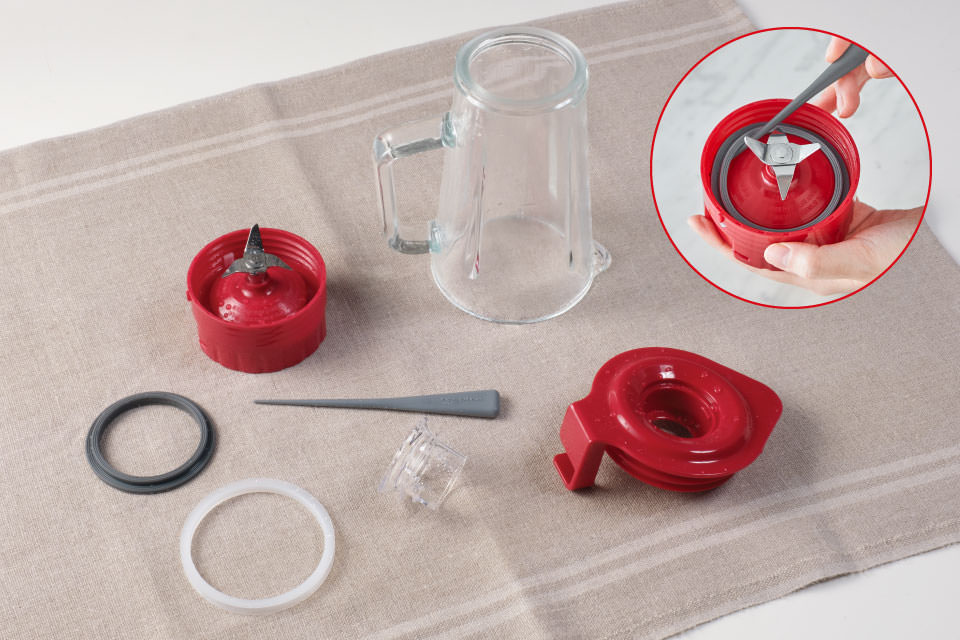 [本体]と[カッター]の裏側以外は全て洗えます。洗いにくい[パッキン]は、付属の[パッキン用スティック]を使うと簡単に取り外せます。[ガラスジャー]は、においがつきにくく、色移りしにくい素材なので、清潔に使えます。