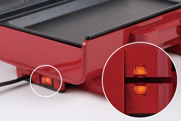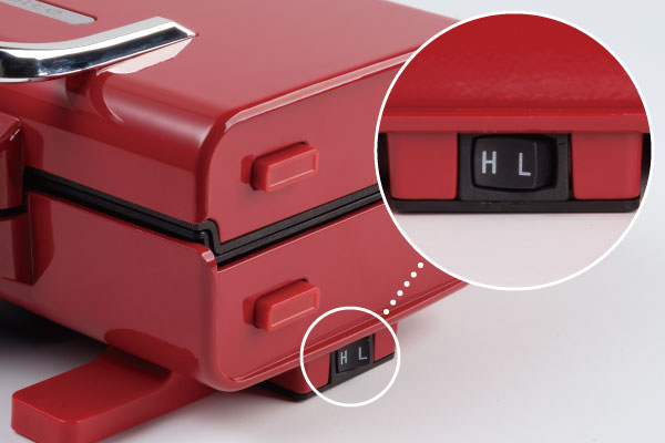 [本体]右側面下部の【温度調整スイッチ】で[プレート]下面の温度を切り替え、火加減の調節ができます。
