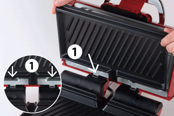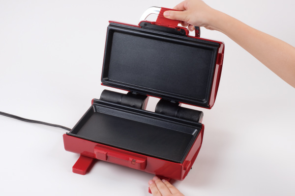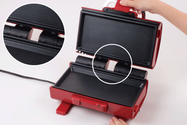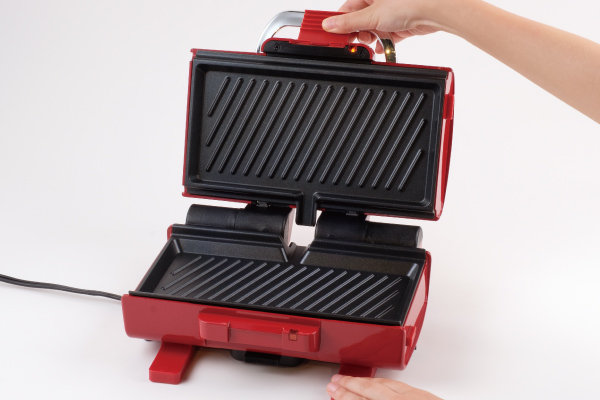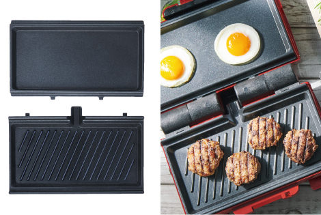 上下のプレートは取り外しが可能。料理に合わせて付け替えられます。挟む、開くの2Wayに加えて、2種類のプレートを付け替えることでさらに料理の幅が広がります。