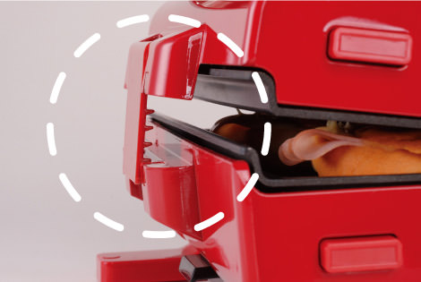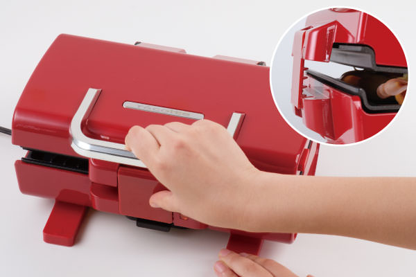 5段階で厚みを調整できる[ハンドルロック]で、分厚い食材も安定して挟めます。