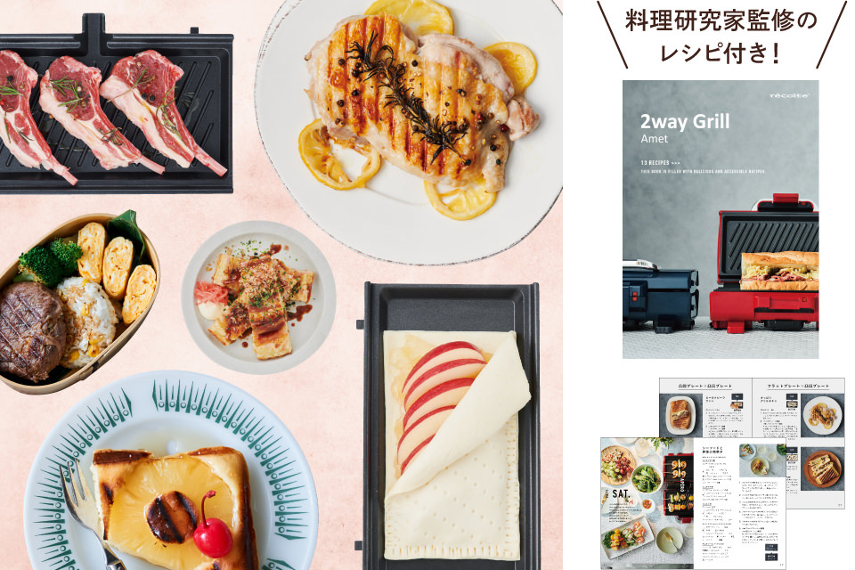 プレスグリルスタイルやテーブルクッキングの参考になるオリジナルレシピブックが付いてきます。