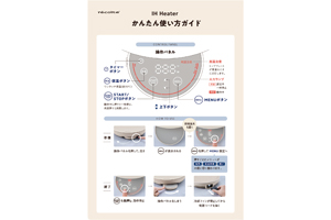 [卓上IHクッキンググリドル]を存分に使いこなす専用レシピブックが付属。作ってみたくなる18レシピを紹介しています。さらに、操作方法をわかりやすく紹介した[かんたん使い方ガイド]も付いてきます。