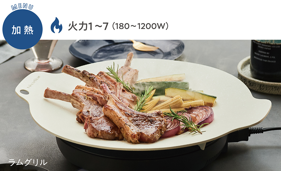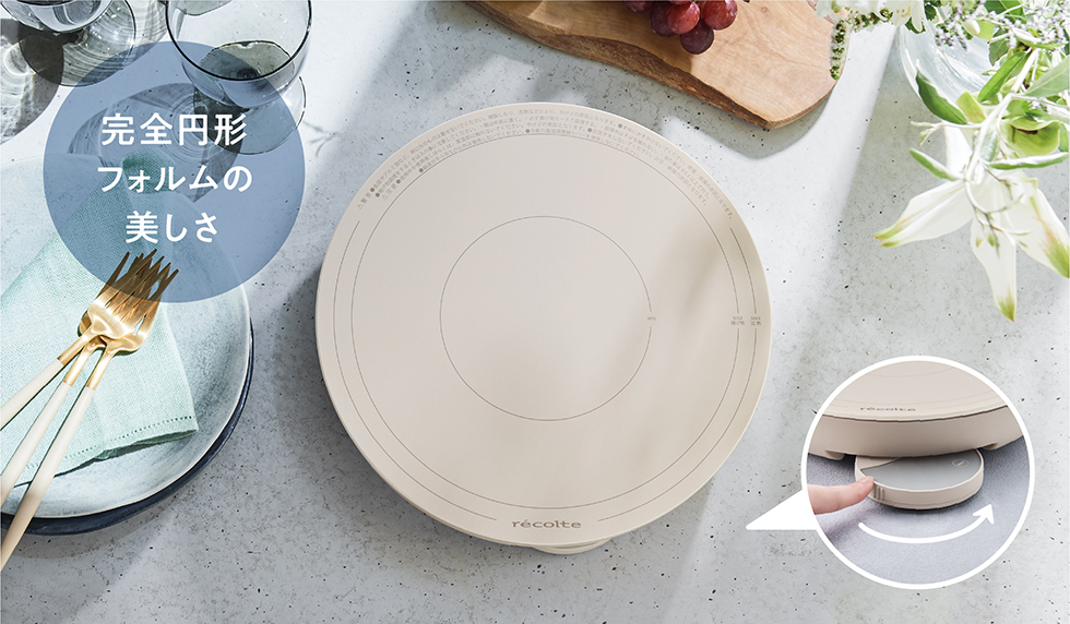 食卓で料理を楽しむため、ムダを削ぎ落としたシンプルで機能的なデザイン。最大出力1200WのIHを採用しているので、火力もしっかり。