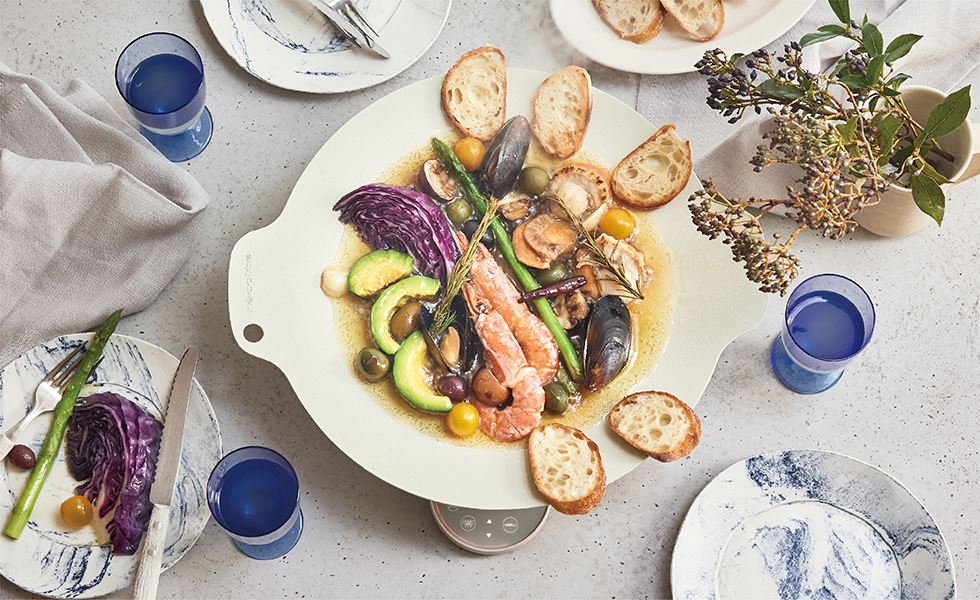 まるで美しい食器のように食卓になじみ、使い勝手は“焼く・炒める・煮る”をこなすフライパンのように万能。