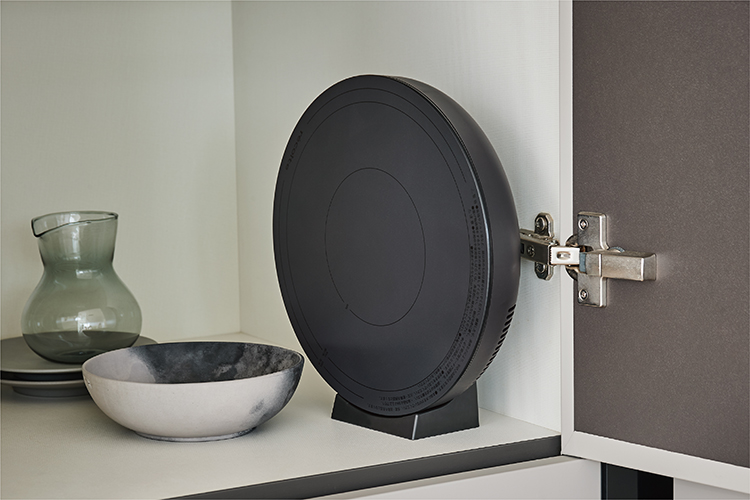 円形なので手を伸ばして食べやすく、省スペース。操作パネルは使うときだけ押して出します。