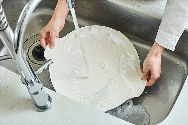 こびりついた汚れがある場合は、ぬるま湯に少しの間浸けてください。