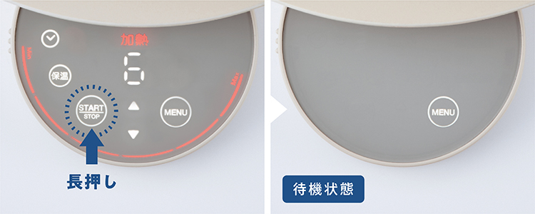 点滅中に再度【START/STOP】ボタンを押すと、直前の設定で動作します。