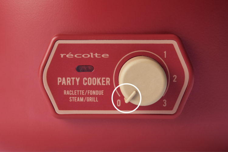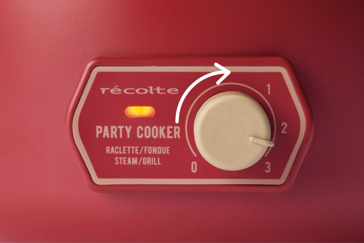 【温度調節ダイヤル】を右に回し、電源を入れ、作る料理に合わせて温度を調節してください。