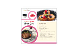 ステーキプレートは厚みのあるアルミダイキャストで熱が伝わりやすく、よりおいしく焼き上がります。焼き目がキレイな凸凹は余分な油も落とします。表面は焦げ付きにくいフッ素樹脂加工。