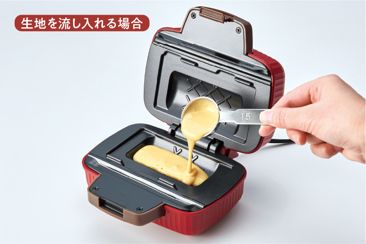 生地がプレートの凹部からあふれないように流し入れてください。