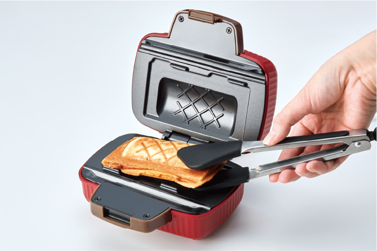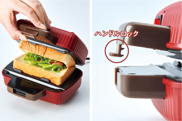 食パンの耳までしっかり閉じられる2段階のハンドルロック、上下の深さが違うプレート形状など、キレイに焼ける工夫がいろいろ!操作はとっても簡単です。