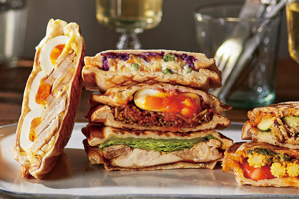 見た目もおいしい、食欲をそそる断面がたまらない。分厚いサンドイッチを切った時のおいしそうな断面にときめく、「断面萌え」な人が、近頃増えています。[プラッド]は具材がたっぷりはさめるから、さらにボリューミーでカラフルなホットサンドが作れます。