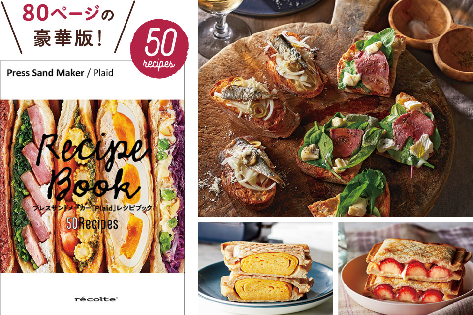 かわいいキルト模様のホットサンドが簡単に焼ける人気のプレスサンドメーカーに、さらに分厚く、具だくさんのホットサンドが作れる[Plaid](プラッド)が仲間入り。熱伝導にすぐれた固定式プレートだから、“約2分半で耳までカリッ、中はしっとり”と焼き上げます。はさむ具材のアイデア次第でアレンジも無限大に楽しめます。豪華な80ページ50レシピのスペシャルレシピBOOK付き。