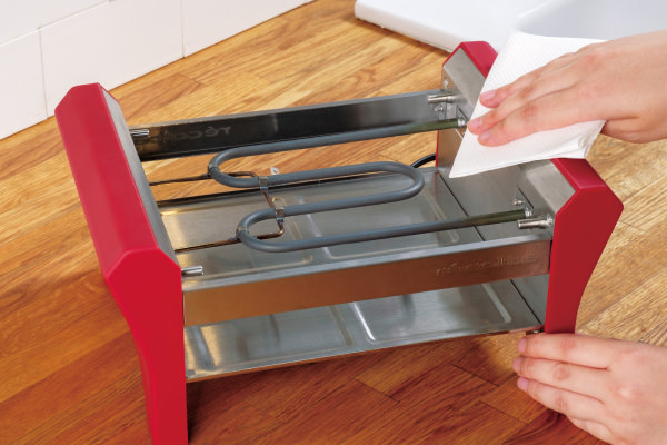 [本体]から [ピザプレート]、[ハンドル]を取り外します。台所用中性洗剤をふくませたスポンジ等でよく水洗いした後、乾いた布等で水気を拭きとってください。