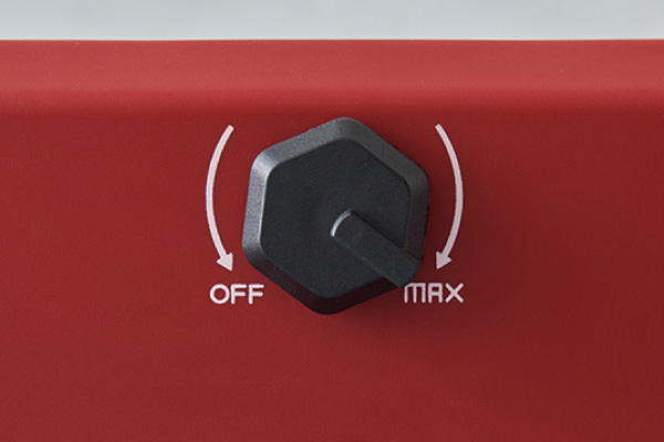 加熱のオン・オフ、温度調節は【温度調節ダイヤル】を回して行います。ダイヤルを右に回すとランプが点灯し、加熱を開始。
