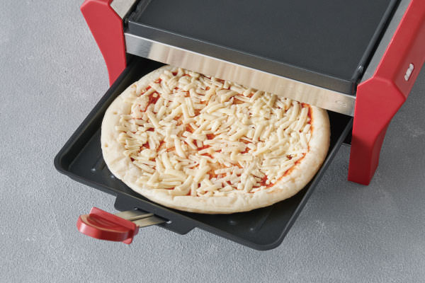 焼けます。焼き時間は、冷凍ピザによって異なるためパッケージをご参照頂き、ご指定の焼き時間からプラス1~2分を目安に加熱頂き、ピザが温まり、チーズが焦げてきたら焼き上がりです。お好みで[ピザプレート(オプションパーツ)]を3分程度、予熱頂いてからピザ焼いて頂くとよりクリスピーに仕上がります。