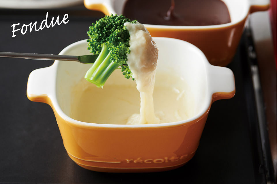 ゆでた野菜やフルーツなど、お好みの食材をフォンデュ串などに刺し、フォンデュソースにからめてお召し上がりください。