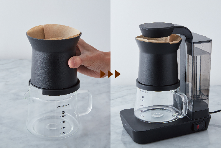 ※ドリップし終えたコーヒーの粉をペーパーフィルターごと捨て、「ご使用後のお手入れ」を参照し、お手入れを行ってください。