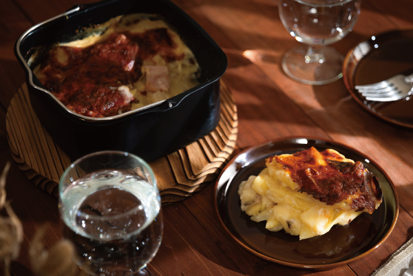 パスタの別ゆで不要。ボリューム感のあるパスタグラタンも、[インナーポット]を使って手軽に作れます。チーズをたっぷりちらしてグラタンに仕立て、最後に少し焦げ目をつけるのがポイント。