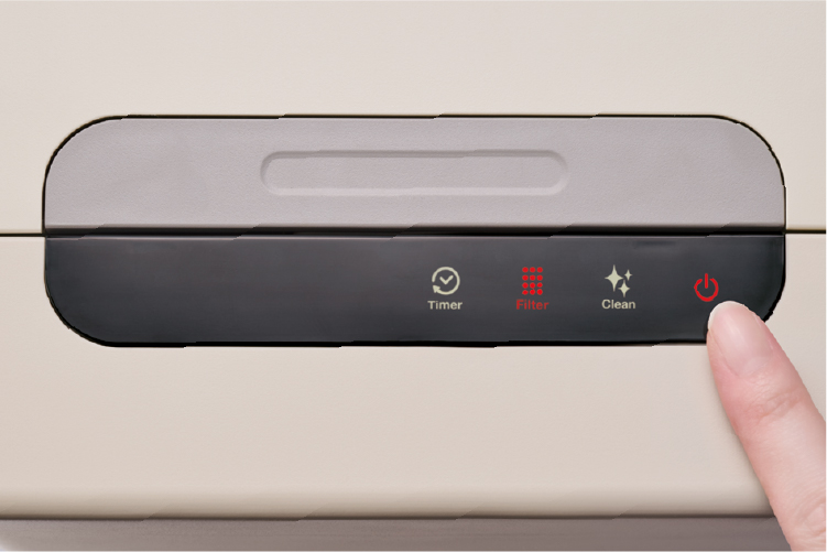 ③フタを閉じ、【クリーンボタン】をタッチします。 【クリーンボタン】が点灯し40~100分間クリーニングを行います。クリーニング後はブザー音が鳴り、終了をお知らせします。途中で止めたい場合は【クリーンボタン】を再度タッチしてください。
