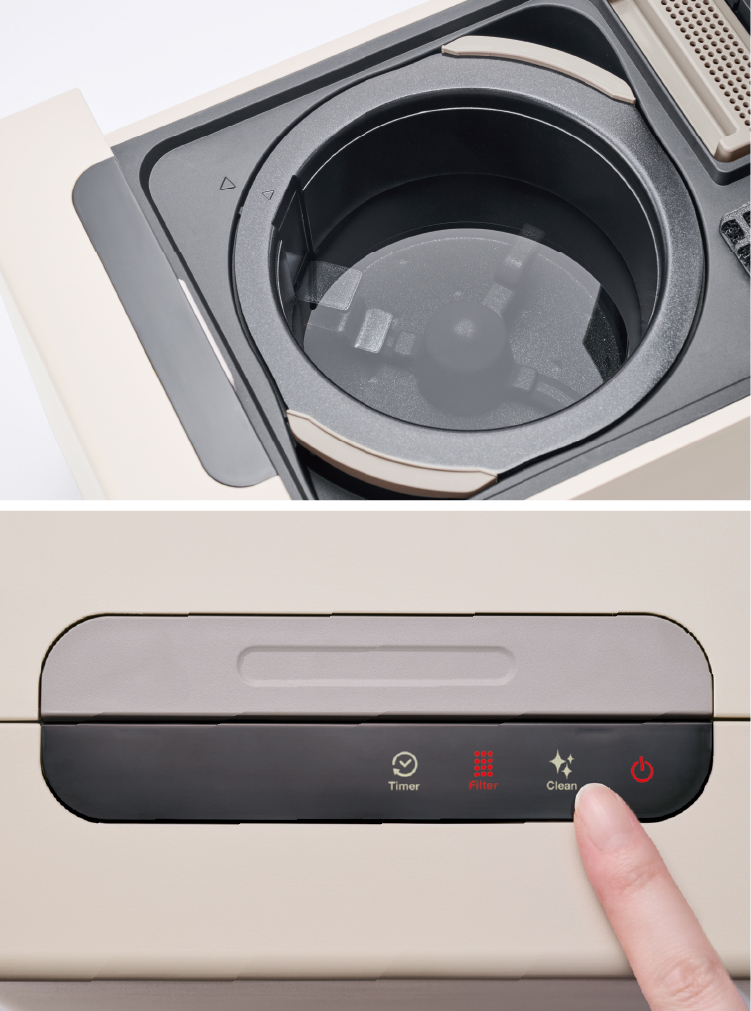 ごみが出たら[バスケット]に入れてスタートするだけ。コンパクトでキッチンにも置きやすく、少ない量から使えるため、ごみを溜めずにすぐに処理できます。