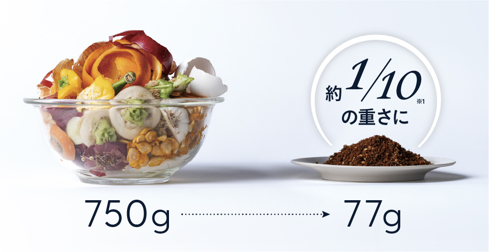 ごみの重さが約1/10(※1)になるから、ごみ出しの負担も大幅に軽減。ごみ袋の節約にもなります。