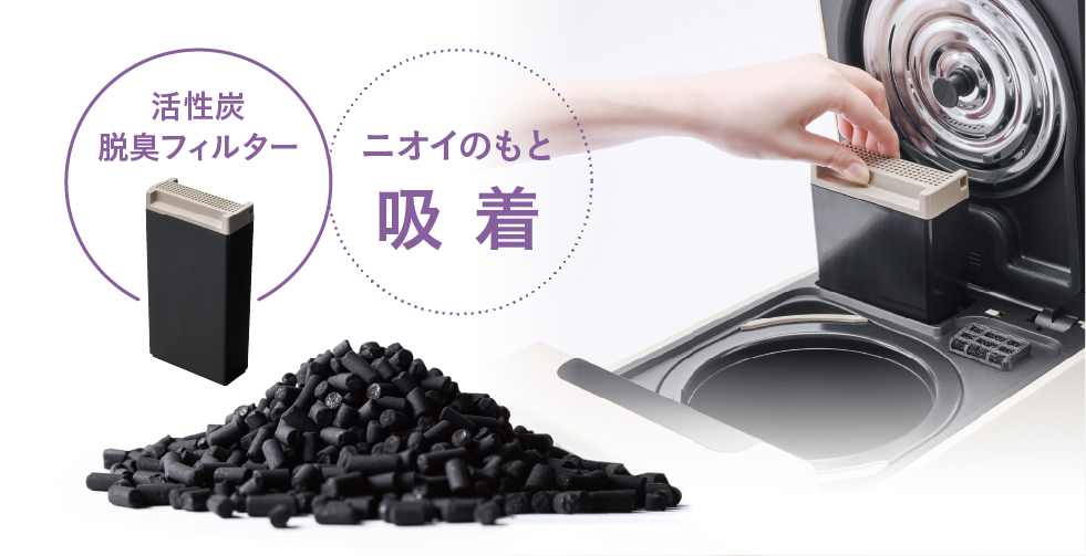 高性能な活性炭[脱臭フィルター]で処理中のニオイ対策にも配慮。