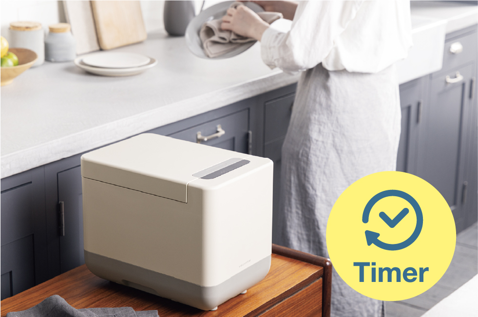 開始時間を予約できる便利なタイマー機能付き。家事の合間や寝ている間に、処理が完了します。