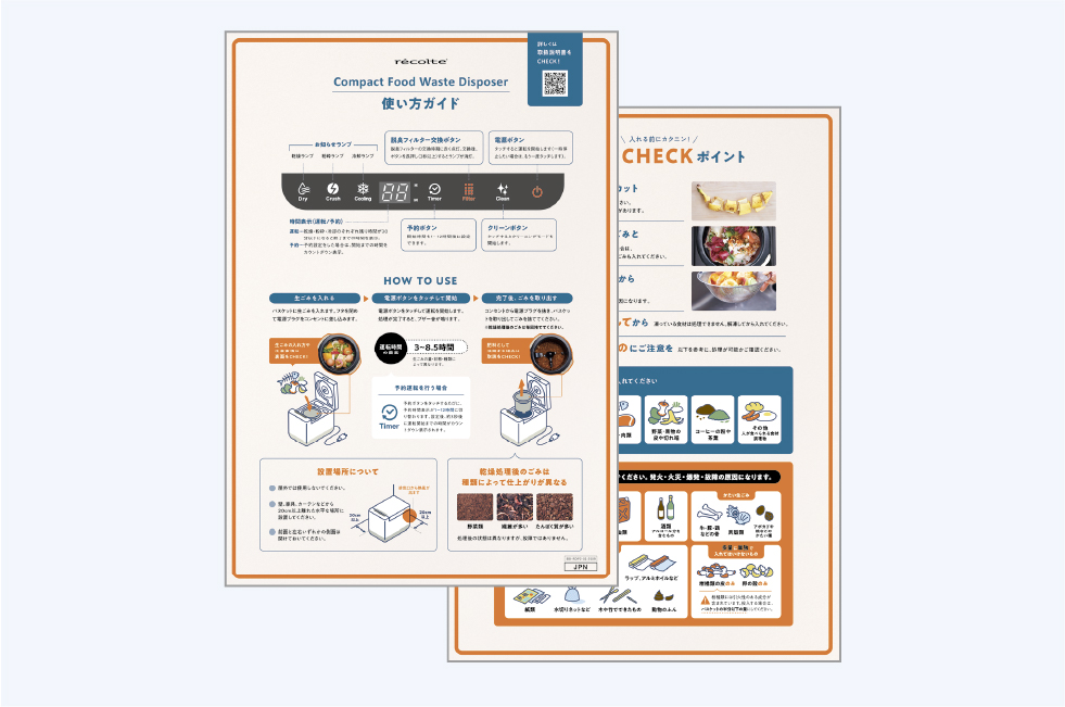 イラスト入りの[ガイドシート]付き。初めての人でも迷わず、使えます。汚れにくいマット仕上げだから、手の届くところに置いておけて便利。