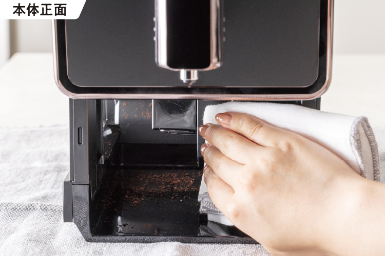 ※静電気によりコーヒーカスが、内部ドリップトレイの奥や[本体]に付着していることがありますが、異常ではありません。