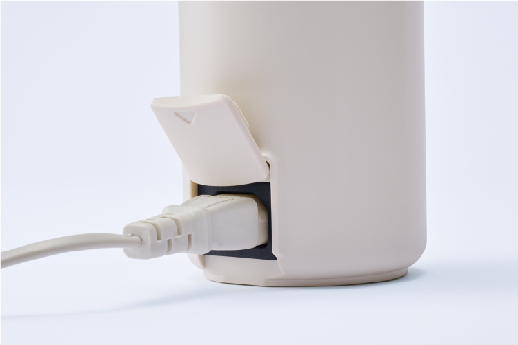 [本体]は二層構造で外側が熱くなりにくく、倒れてもお湯がこぼれにくい安心設計。AC100-240Vで、海外でのご使用にも対応しています。