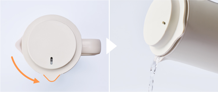 注ぐときはやけどに注意して[フタ]を約90°に回してください。
