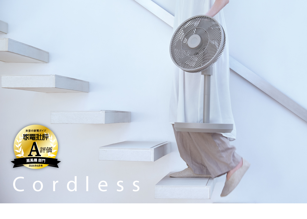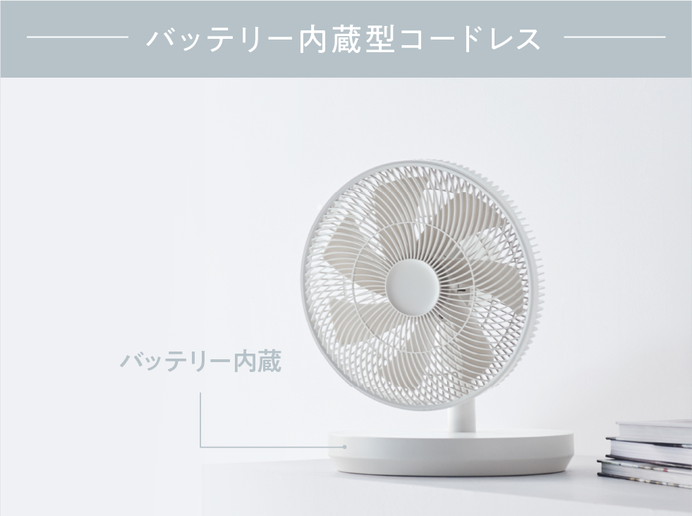 バッテリー内蔵型のコードレスで、電源が確保しにくい場所にも持ち運んで使える軽量&多機能な扇風機[コードレス サーキュレーション扇風機]。高さが4段階に調節できるうえ、真上を含む上下左右に幅広く角度調節が可能。空気を効率よく循環させます。羽根の回転の細かなコントロールが得意なブラシレスDCモーター採用。扇風機としてだけでなく、サーキュレーターとしても使えるので1年中活躍します。