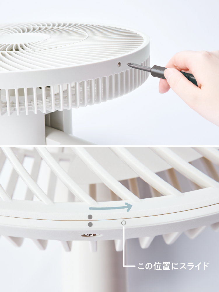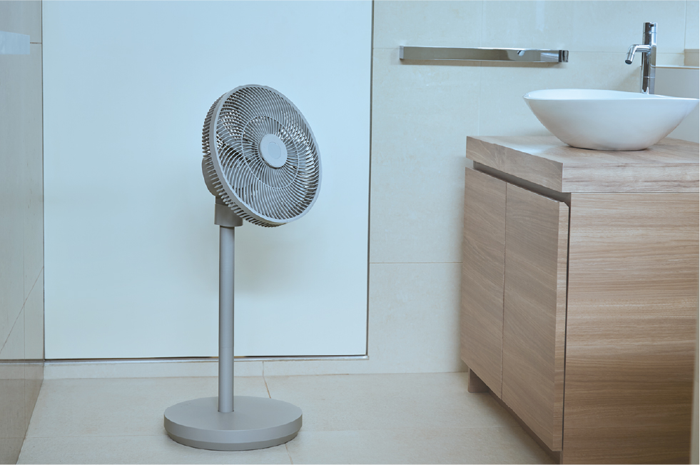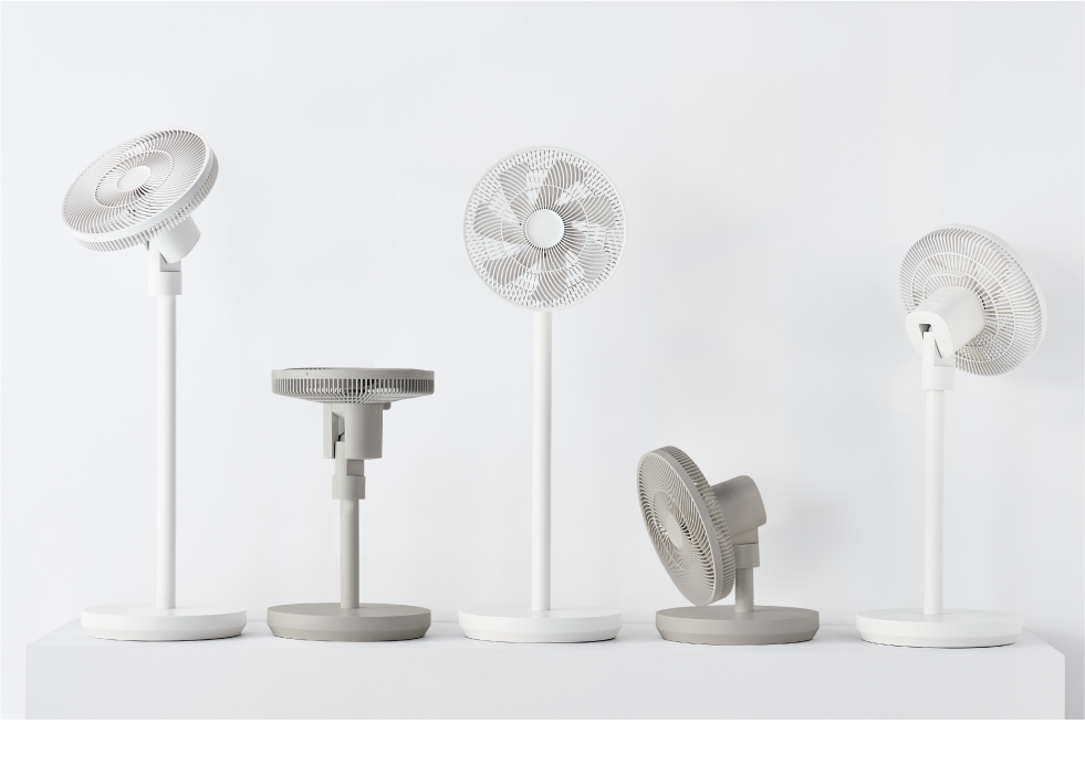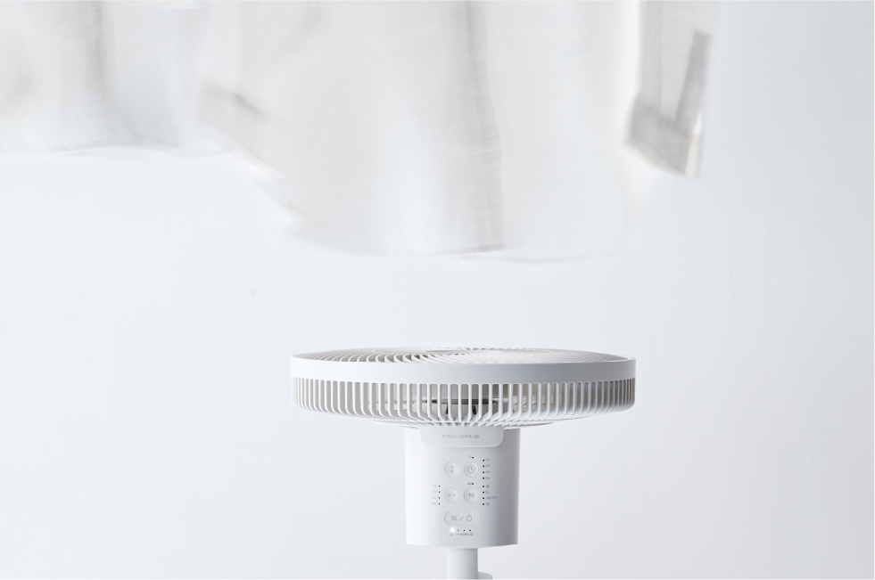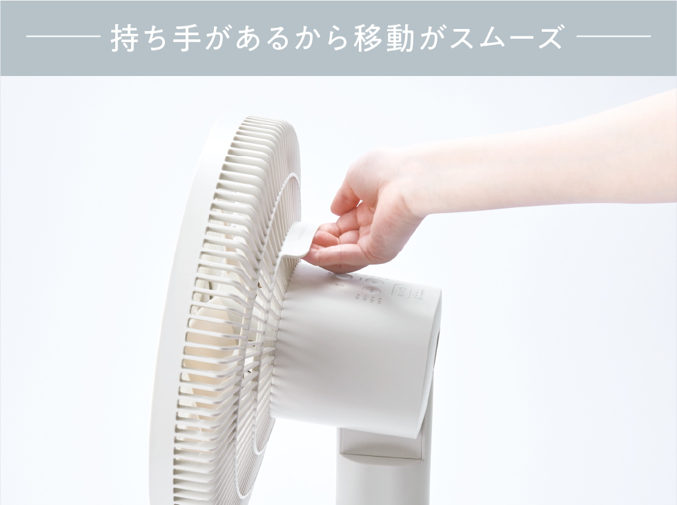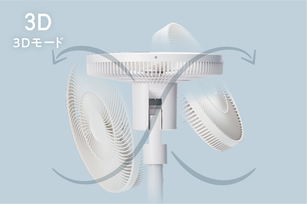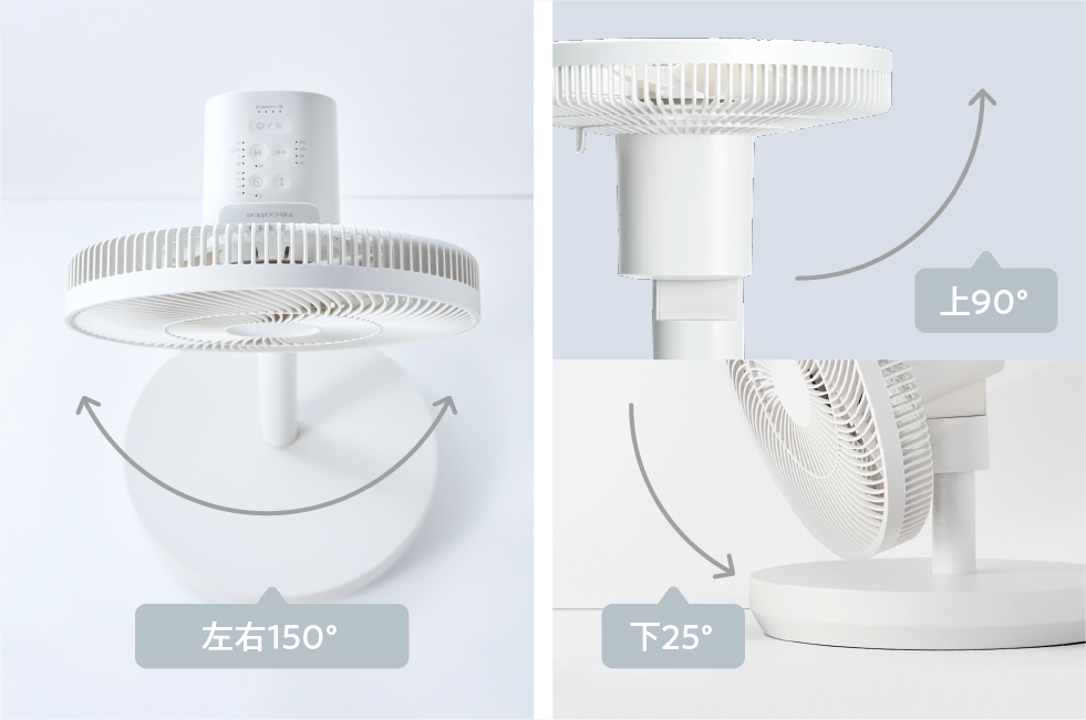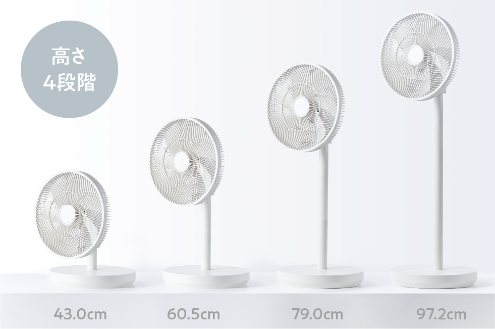 高さは4段階に変更可能。また、自由な場所へ送風ができるよう可動域を幅広くし、上下・左右それぞれに首振り専用のモーター(ツイン首振りモーター)を搭載。リビングファンとしてはもちろん、サーキュレーターとして洗濯物に風をあてて部屋干し用にしたり、床面近くの足元へ送風したりと、暮らしに合わせて幅広く使い分けできます。