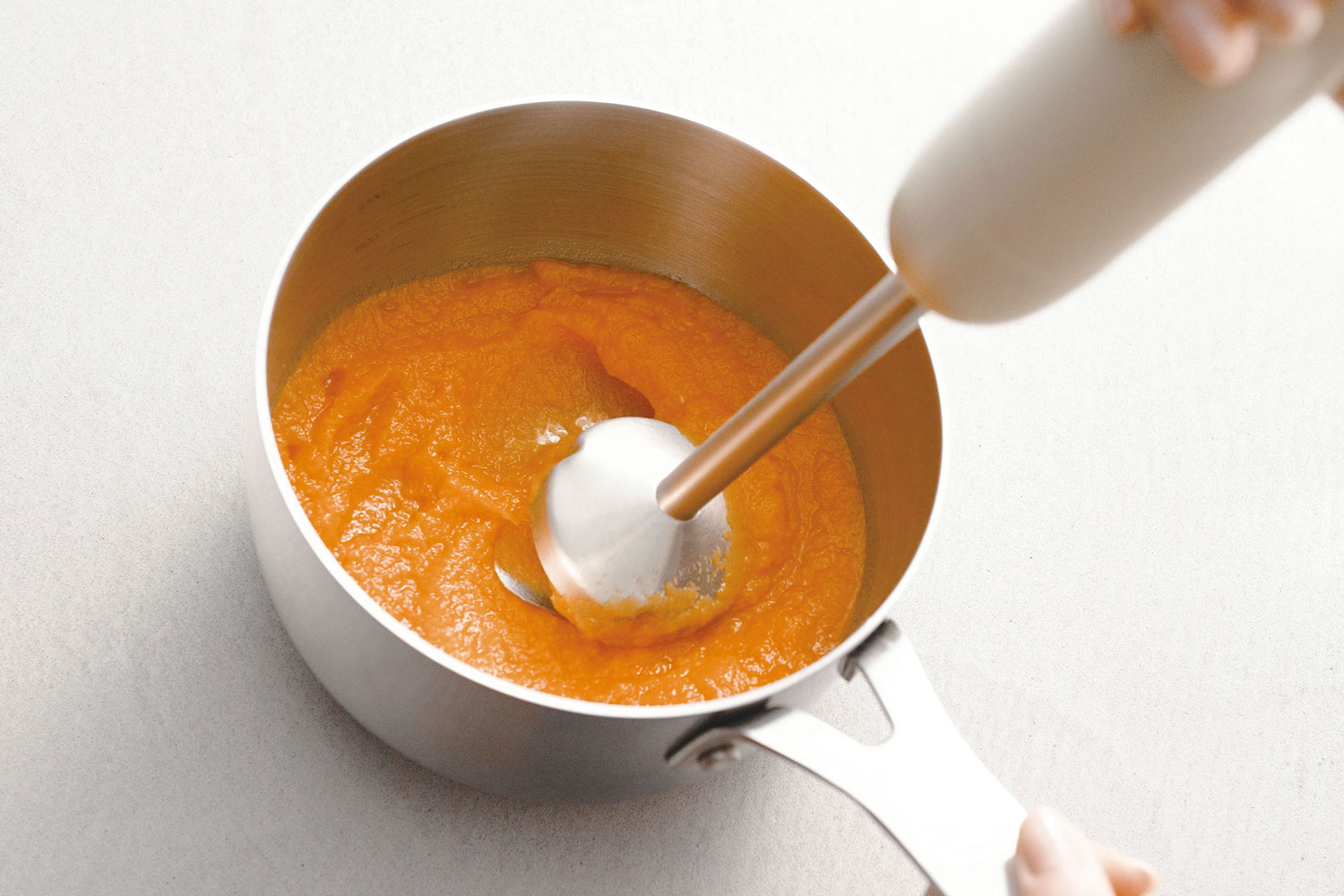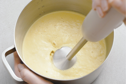 [ブレンダー]でなめらかになるまでつぶしながら混ぜれば、ポタージュなども簡単に作れます。