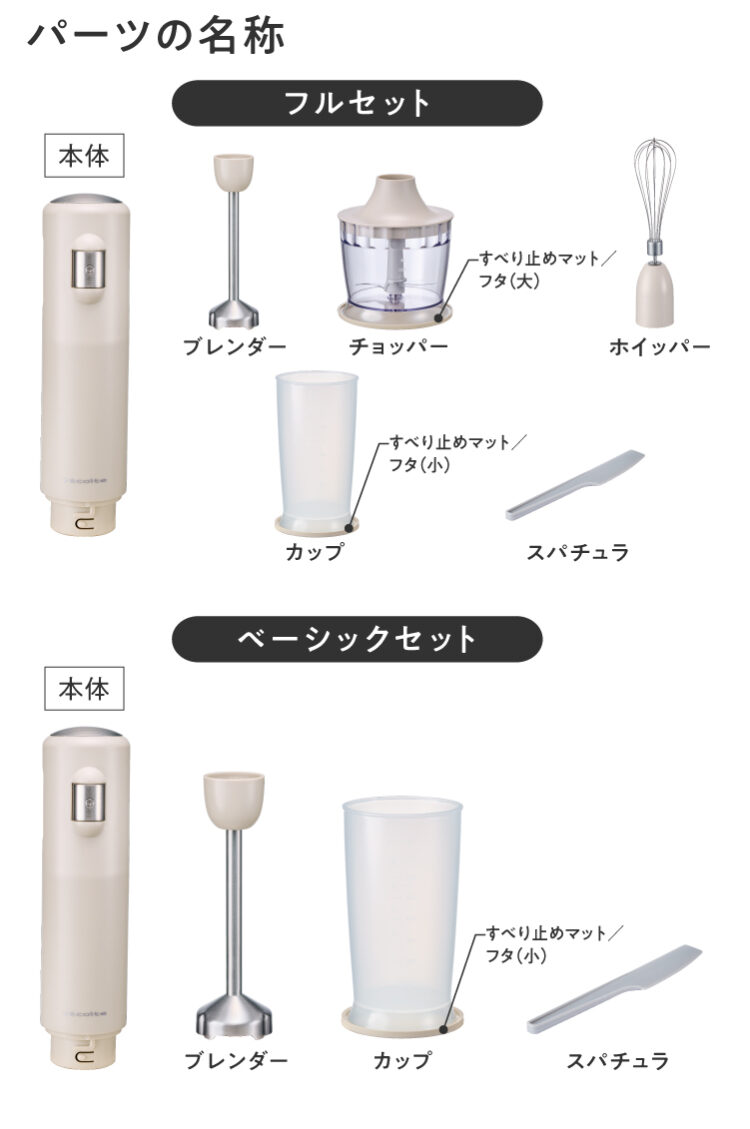 ※[ハンディブレンダー ベーシックセット]には、[ブレンダー]のみ付属。
