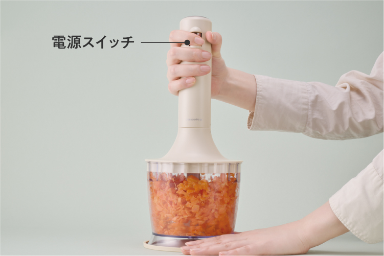 チョッパーカップをしっかり押さえ、【電源スイッチ】を押してください。