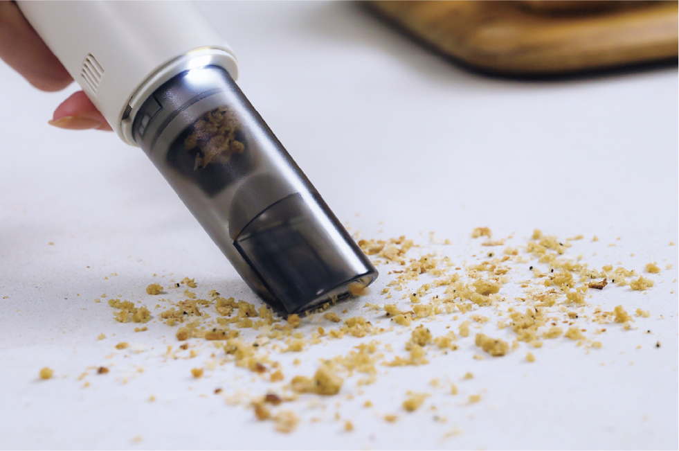 食卓やデスクに残ったパンくずやお菓子のかけらも、サッと吸い取れます。