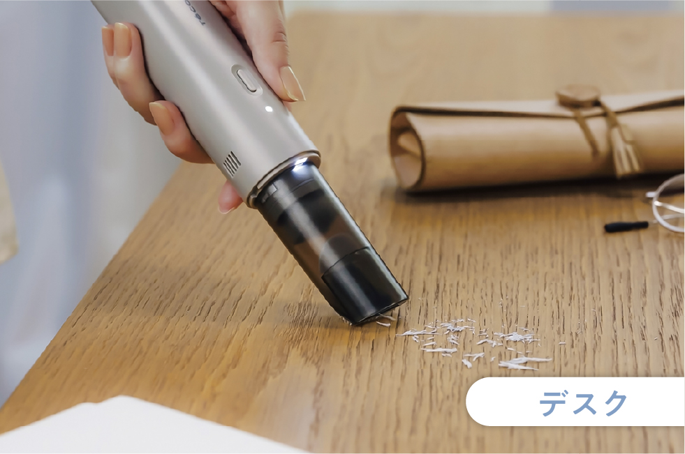 食卓やデスクはもちろん、冷蔵庫の中や靴箱、家具の隙間など、大きな掃除機では届きにくい場所に。