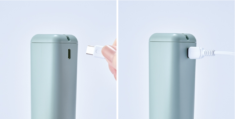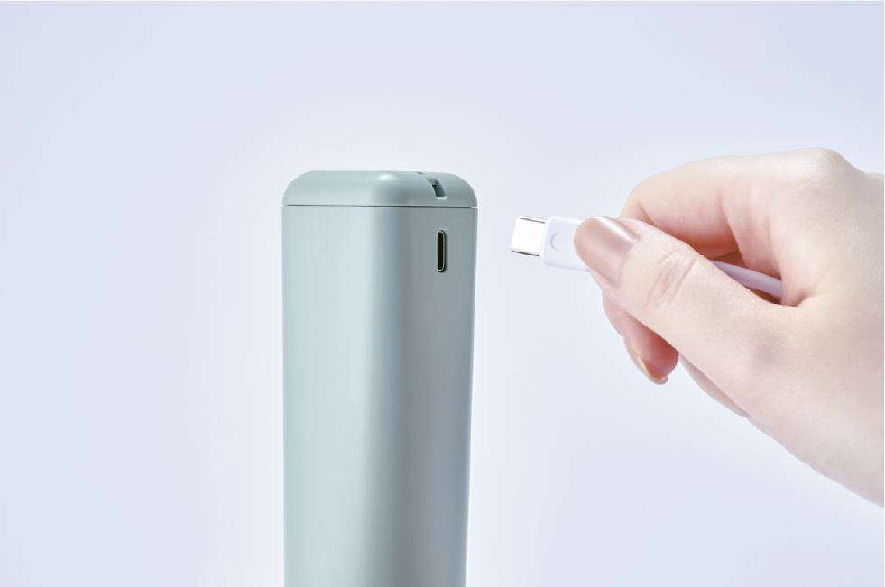 スマホと同じUSBケーブル(タイプC)で充電可能。
