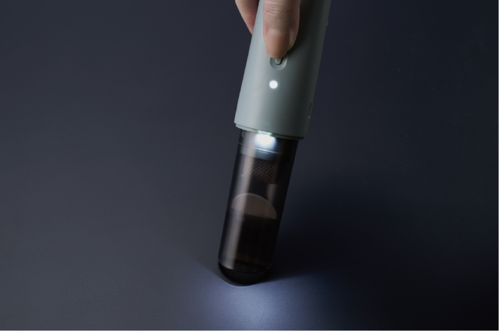 掃除機を出すほどでもないけれどキレイにしたい。毎日の“ちょっと掃除“に便利なミニサイズの充電式[コードレス スポットクリーナー]。[本体]わずか約170g、ハンドル部分約3.5cmの軽量&スリムボディなので、握りやすく操作もラクラク。コンパクトでも簡単な掃除には充分な吸引力で、食卓やデスク、家具の隙間など、気になる場所をサッと清潔に。動作時にはLEDライトが点灯するため、暗い場所でもホコリやゴミを見逃しません。