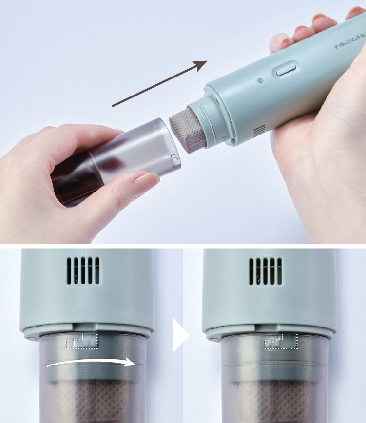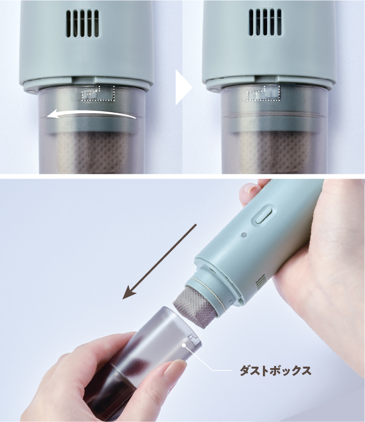 ②回らなくなるまでダストボックス を右(反時計回り)にひねります。