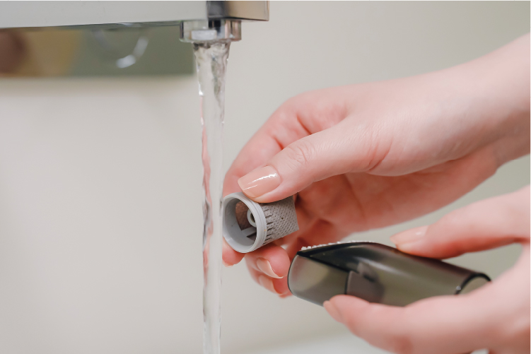 ②ダストボックス・フィルターに付着しているほこりを落とす、または軽く水洗いをして陰干しで十分に乾燥させます。