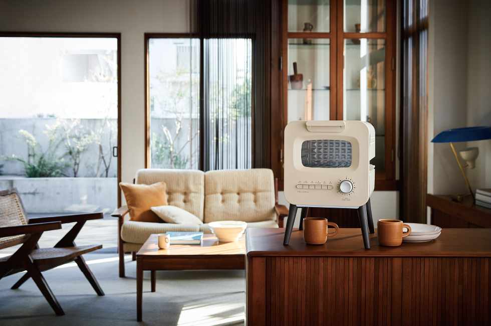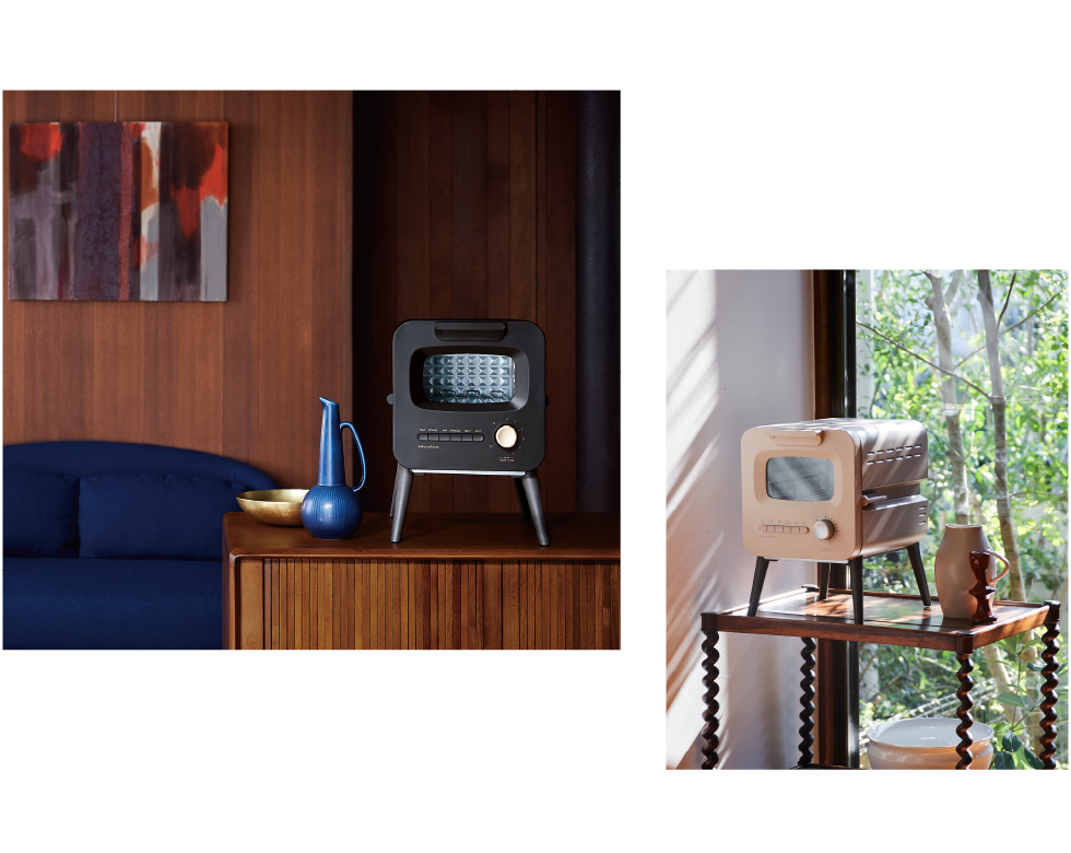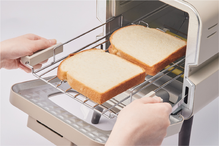 [スライドラック トースター]は、お気に入りの家具のように、日々の暮らしを彩る家電になることを目指したオーブントースター。脚付きのデザインは、どこか懐かしく、親しみ深く。使い勝手がよく、軽快にトーストやオーブン料理を楽しめます。