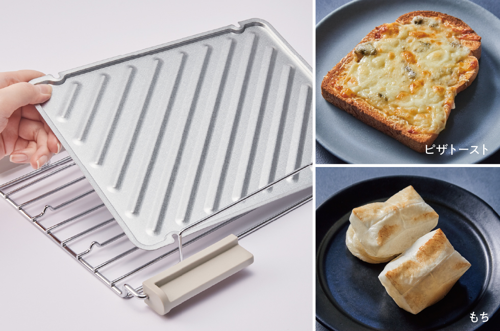 チーズをたっぷりのせたトーストや小さなクッキーなどを焼くときに便利な[トレイ]が付属しています。