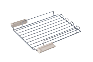 両側の持ち手を握って手前にスライドさせれば、ラック全体がすっと引き出せます。持ち手は熱くならないので、素手のまま取り外せ、熱々の料理をテーブルでサーブすることもできます。