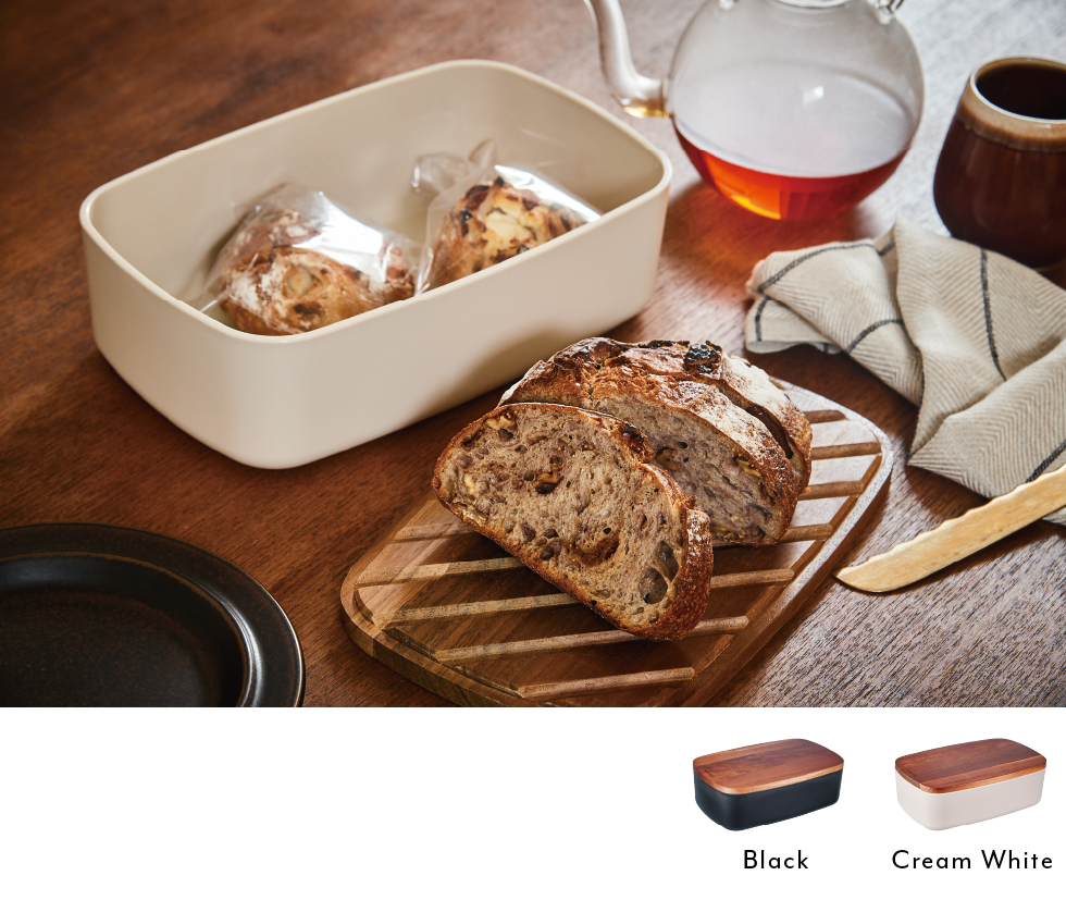 [本体]カラーに合わせて使える[ブレッドケース(別売)]。[フタ]は、上質感のある木製(アカシア)。